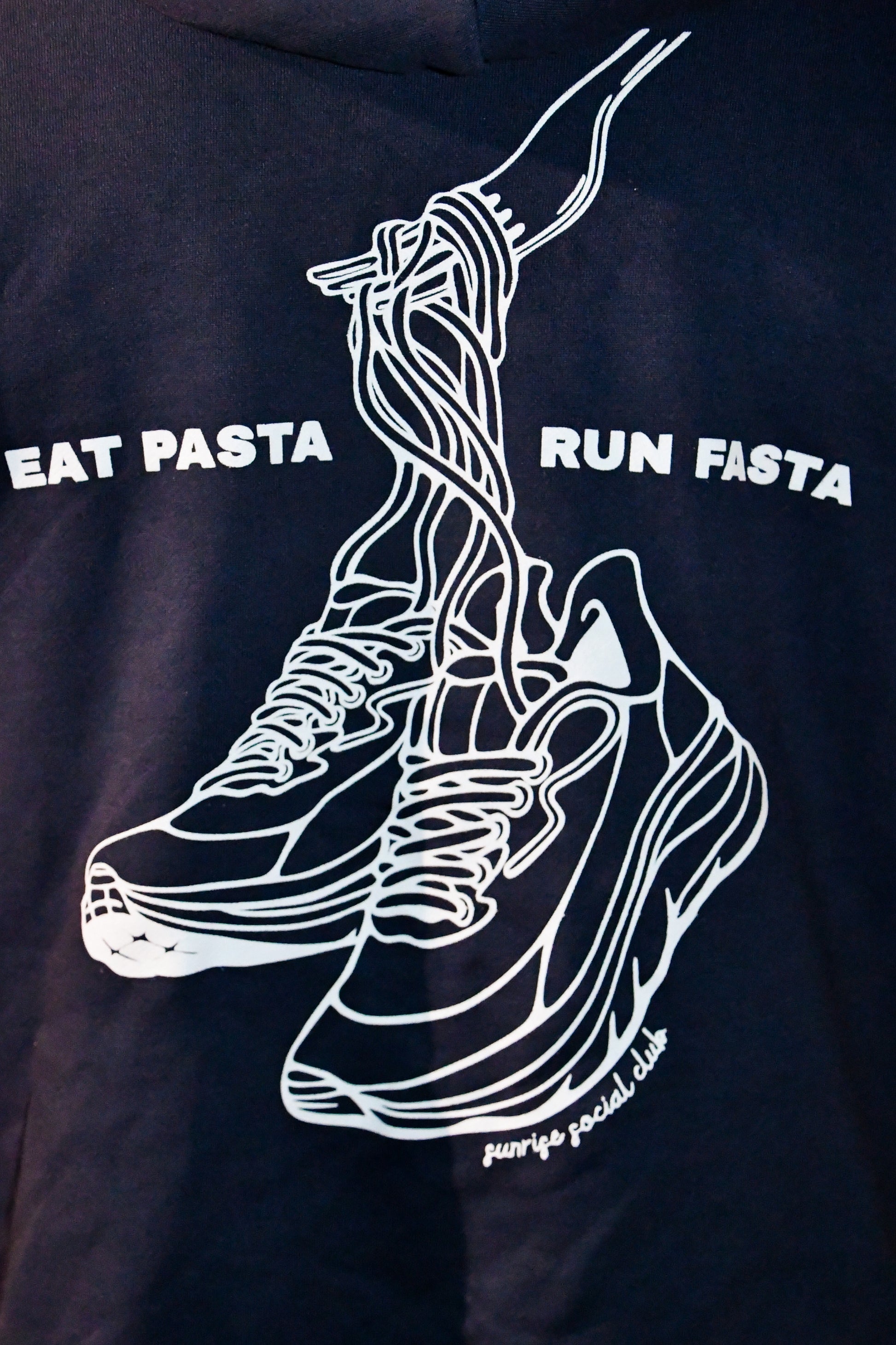 Cozy, durable, and perfect for pre-run warmups or post-run pasta nights, our Eat Pasta Run Fasta hoodie is designed for everyday comfort.